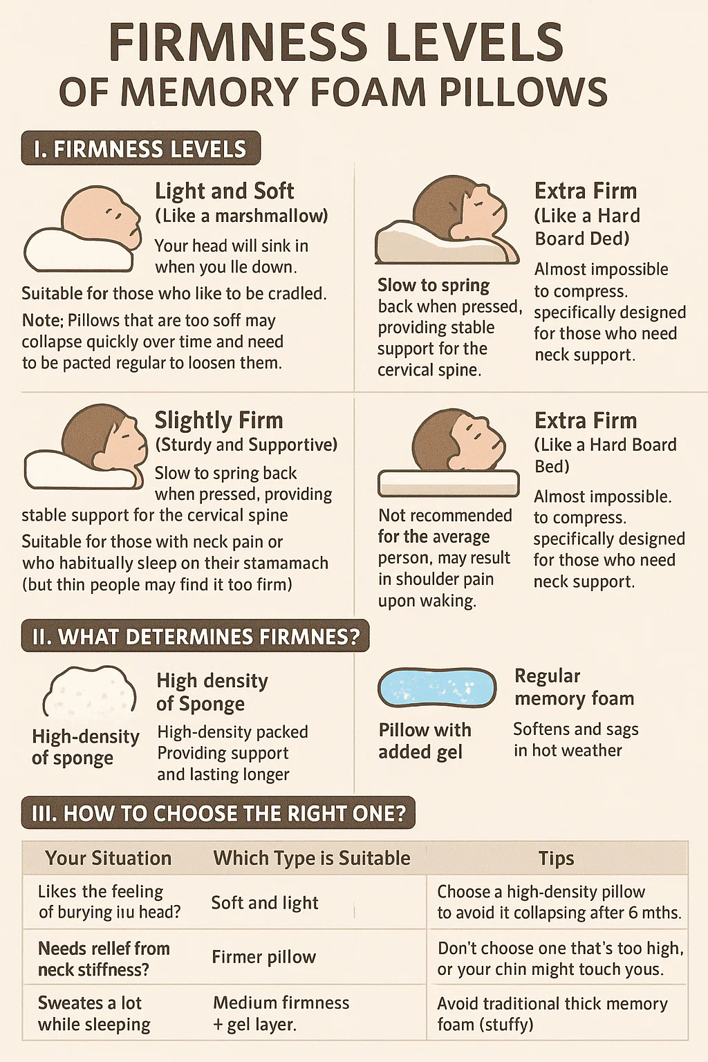 | Älskar att sjunka ner i kudden | Plysch mjukt Memory Foam | Välj högdensitetsskum för att undvika att det plattas ut |