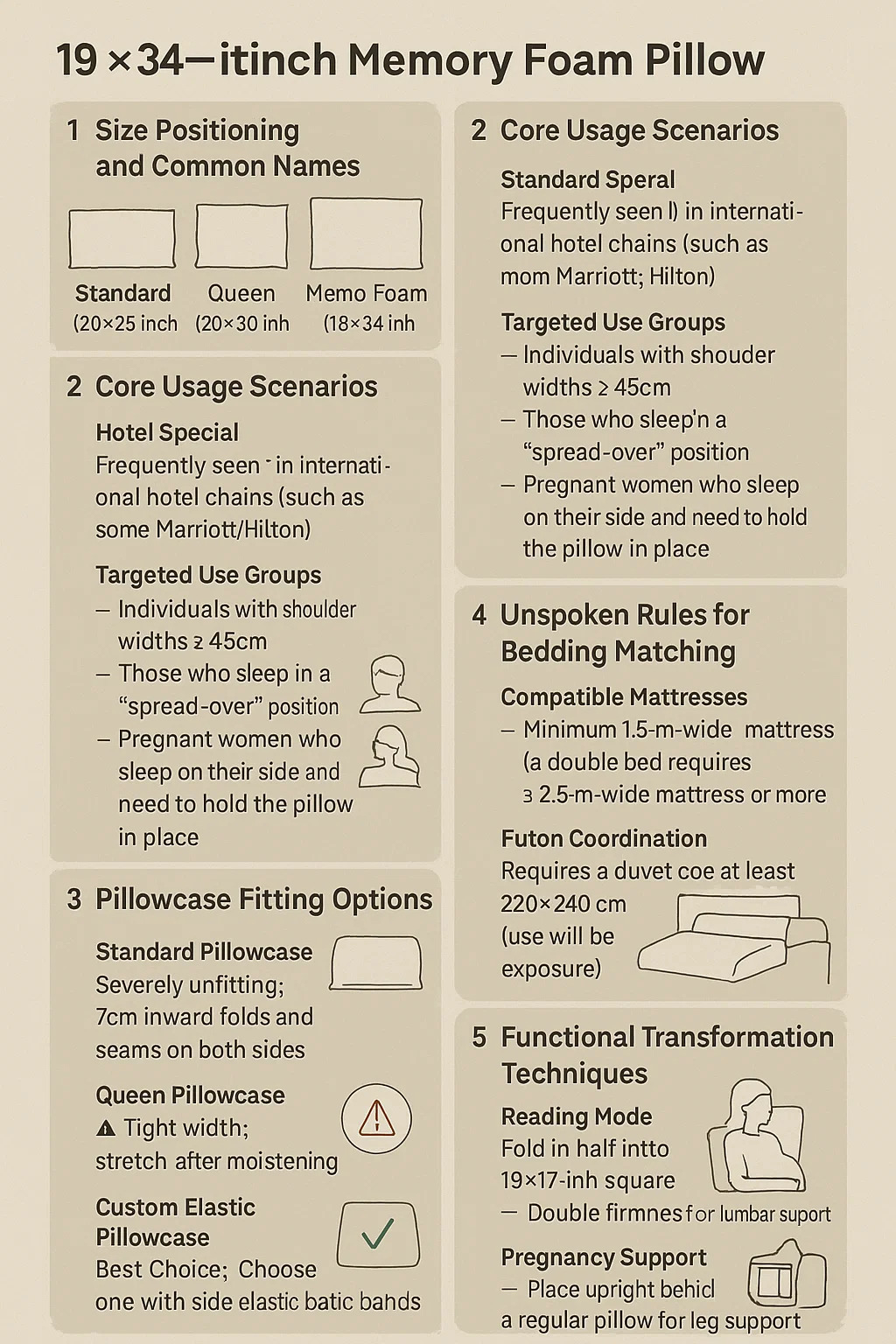 Icke-standardspecifikationer: bredare och kortare än en standardkudde (20 × 26 tum), något bredare än en drottningskudde (20 × 30 tum)
